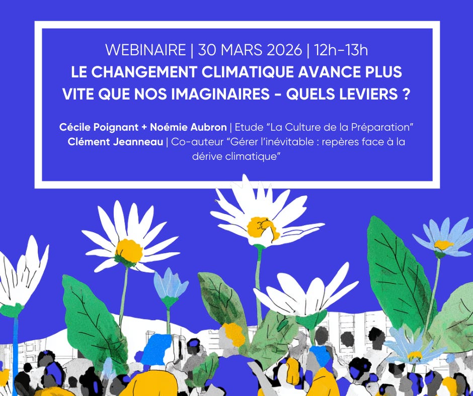 En effet, le changement climatique avance aujourd’hui plus vite que nos imaginaires. Face aux événements extrêmes, nous restons souvent dans le déni, en comptant sur la technologie pour nous protéger. Avec Cécile Poignant, et grâce au soutien de Leroy Merlin Source et de MAIF, nous avons exploré une autre voie : celle de la « culture de la préparation ».